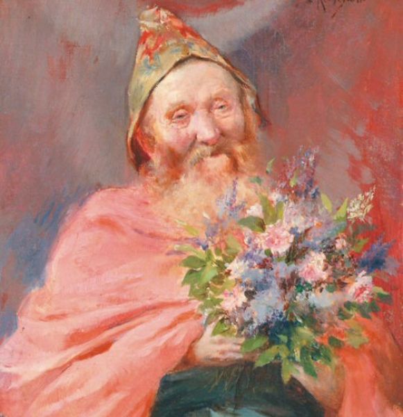 Le vieux moine au bouquet de fleurs