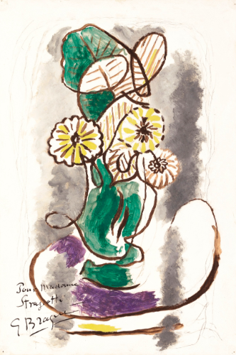 | FLEURS ET FEUILLES DANS UN VASE | |