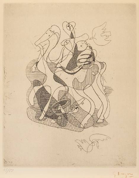 | Etching Etching on Van Gelder paper, signed in brown pencil and numbered 43/50, published/printed by Vollard/Galanis, Paris | |