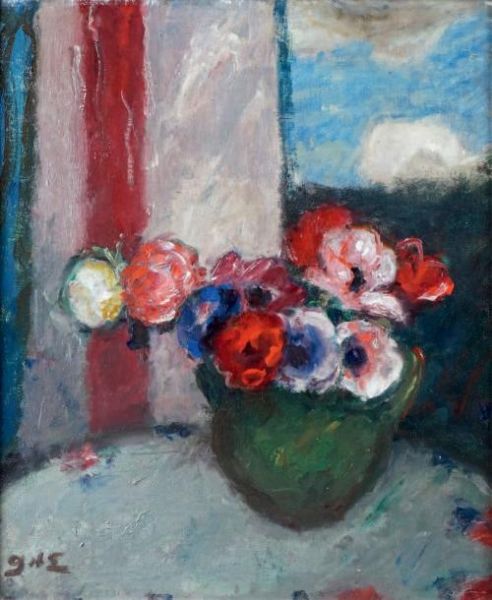 VASE D'ANÉMONES DEVANT LA FENÊTRE