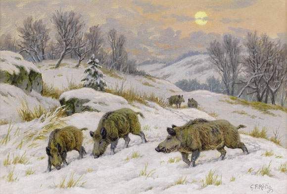 COMPAGNIE DE SANGLIERS DANS LA NEIGE