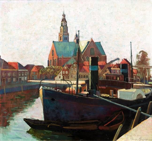 Schepen aan de kade voor de Groote of Nieuwe kerk te Maassluis