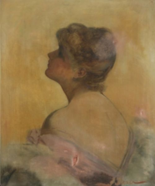 Bildnis einer eleganten Dame mit erhobenem Kopf im Profil nach links