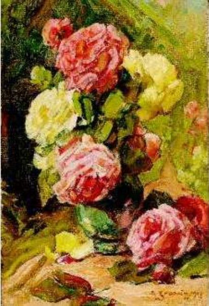 NATURE MORTE A LA STATUE ET AUX ROSES