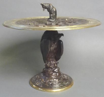 Coupe sur pied en bronze doré et patiné