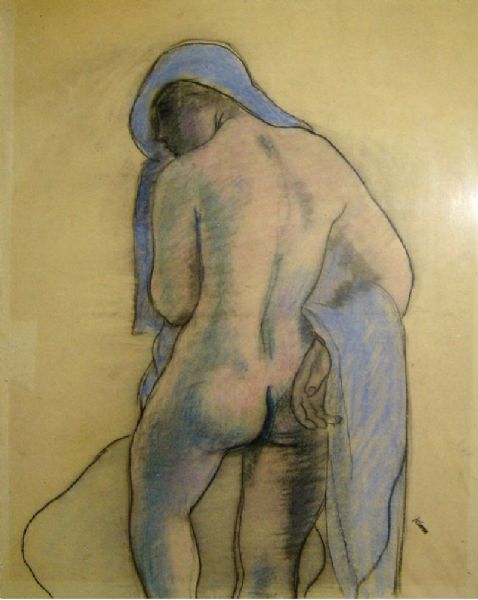 Nu de dos au drapé bleu