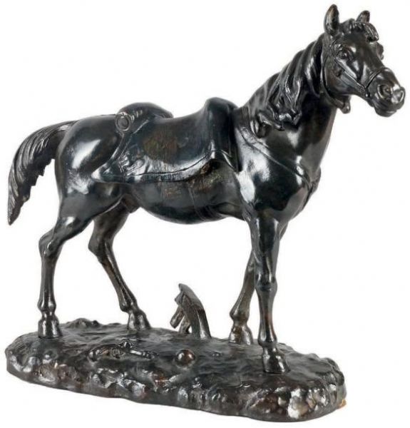 CHEVAL REPOSANT SUR UNE TERRASSE AVEC ESSIEU BRISÉ ET REVOLVER