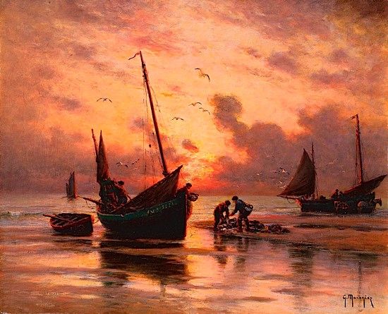 PECHEURS SUR LA GREVE, SOIR D'ETE