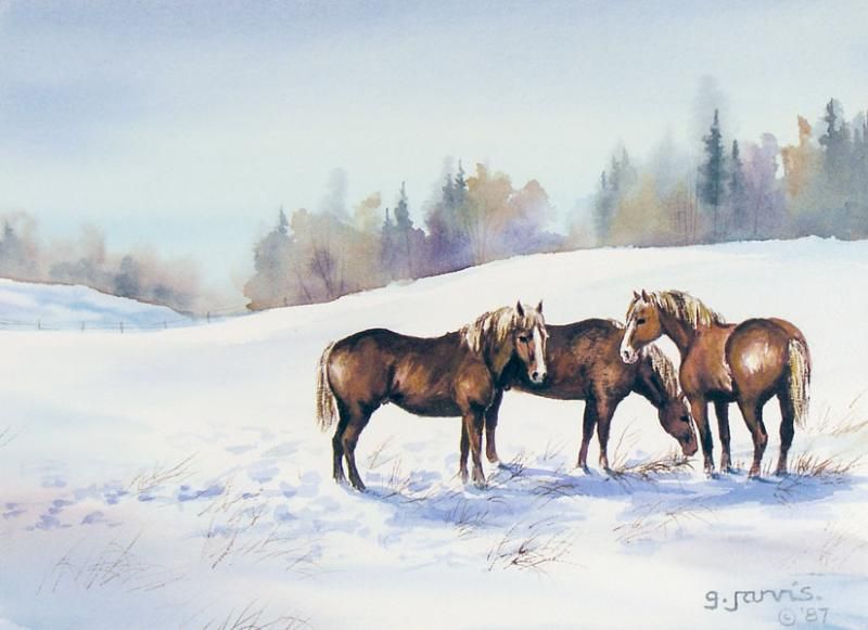 HORSES GRAZING, WINTER; 1987