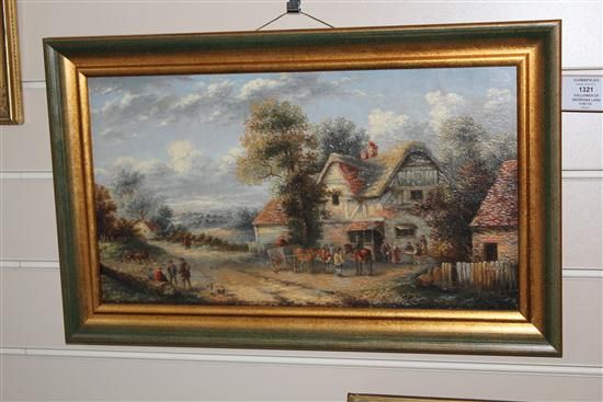 Figures outside country taverns