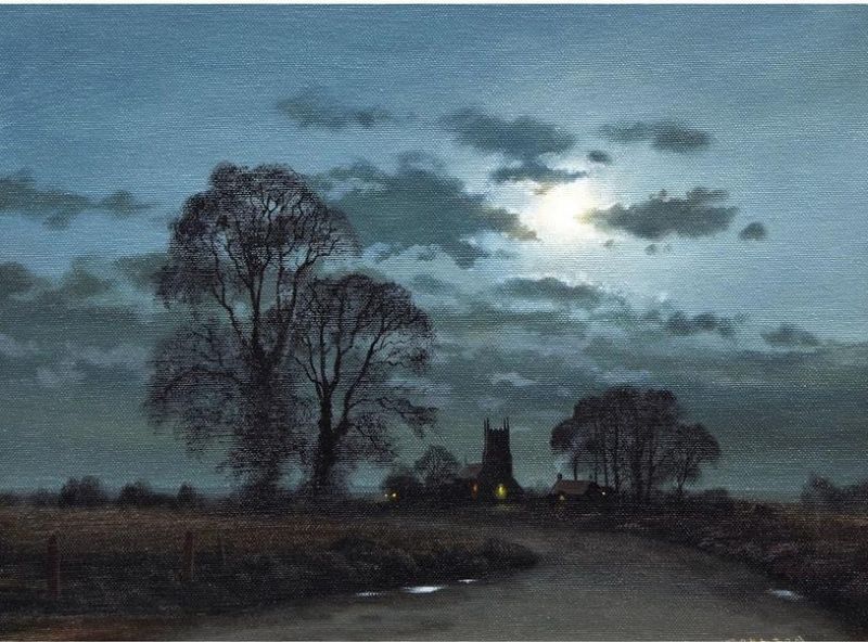 A Village Road by Moonlight