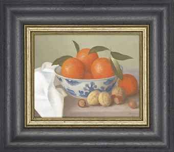 | Clementines with leaves; Lemons; Apples in an Imari bowl; and Red currants in a paper bag | |