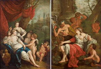| Venus looking at herself in a mirror and amoretti; Bacchus and Ariadne, pendants | |