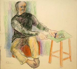 Crayon and ink