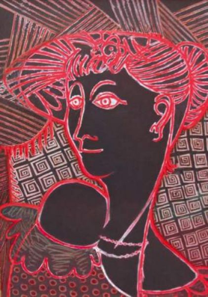 PORTRAIT DE MICHOLE AU CHIGNON ROUGE