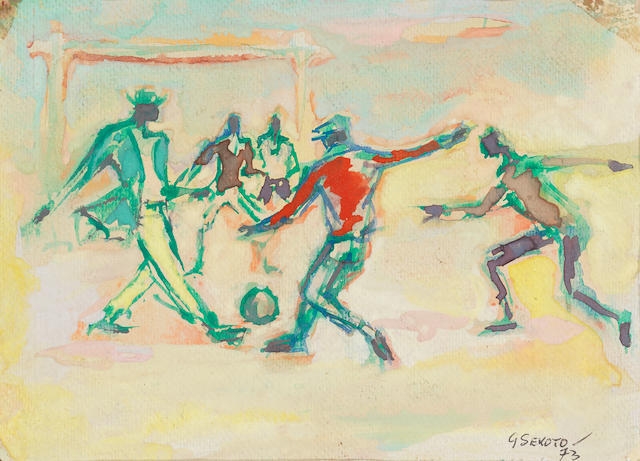 Two watercolours: 'Head of a Senegalese woman', and 'A Football Game'