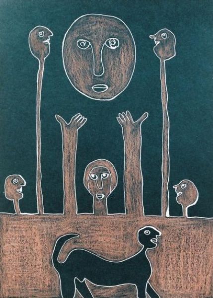 Ink and crayon on paper