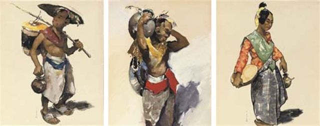 | Watercolor and gouache on paper, unframed, 3 items | |