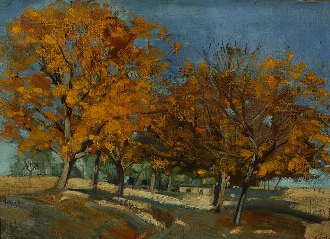 Landschap met bomen in herfstkleuren