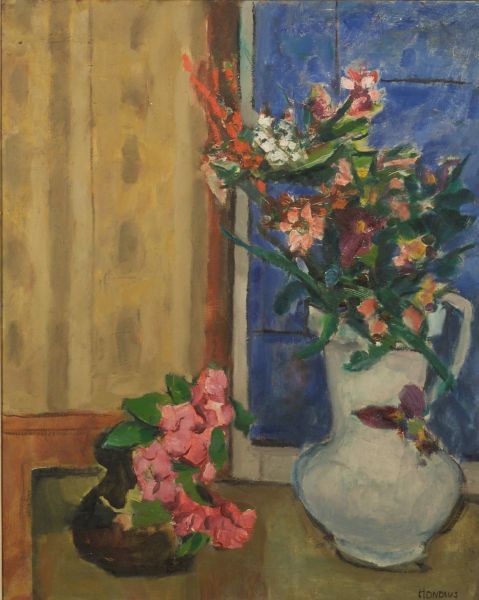 White Pitcher with Garden Flowers