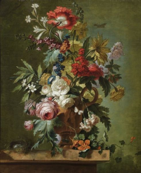 Bouquet de fleurs et nid d'oiseau