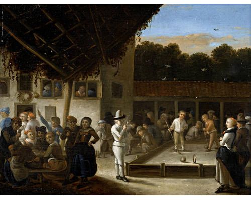 Croquet being played in the courtyard of an inn