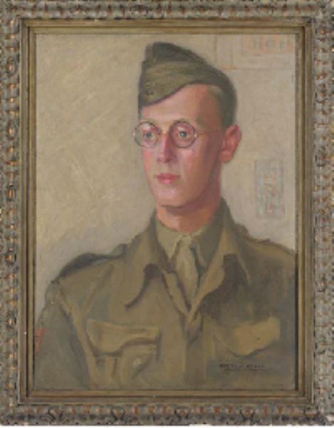 | Portrait of Ronald Hudson, quarter-length, in military uniform and glasses; with a study of two figures before a window (verso) | |