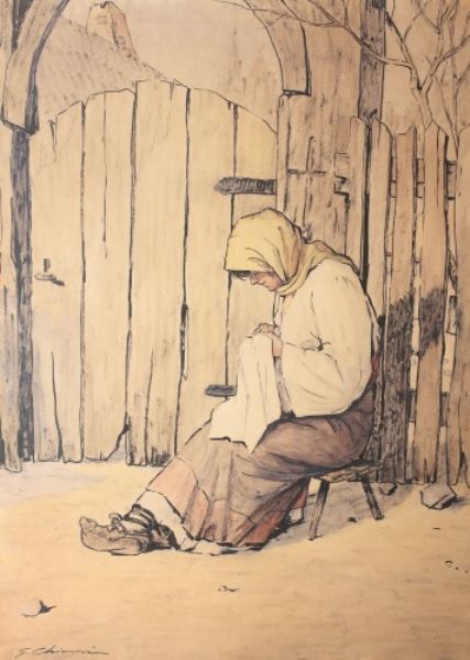 Femeie cusând