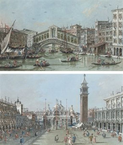 | View of the Rialto Bridge, Venice; and View of the Piazza San Marco, Venice | |