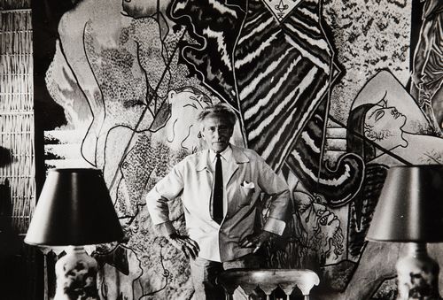 | Jean Cocteau à la Villa Sospir devant sa tapisserie Judith et Holopherne, c. 1960. | |