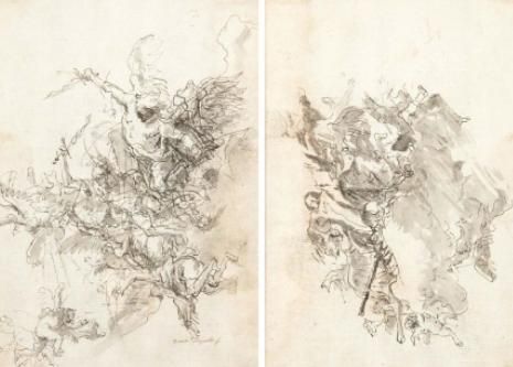 Feuille d'étude recto-verso: saint Michel et Dieu le père