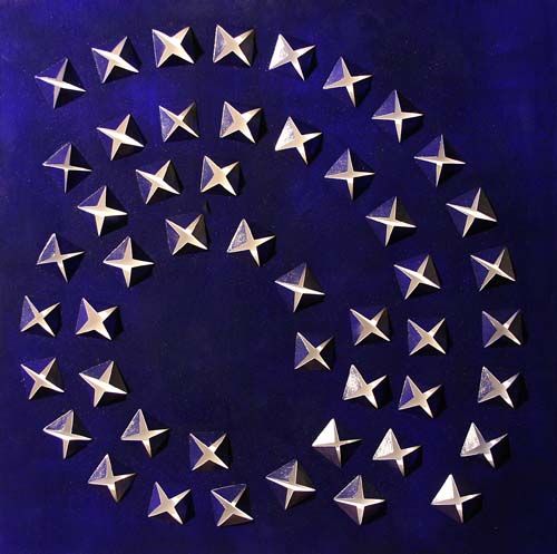 Enamel on canvas laid down on board