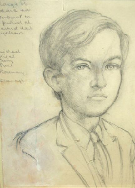 | Portrait of a boy head and shoulders, traditionally held to be Nigel Bruce, Boy from St Anselm's School, Bakewell | |