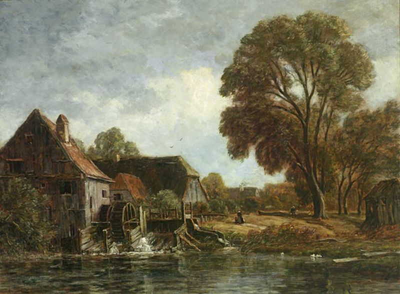 Bachlandschaft mit alter Mühle und Figurenstaffage