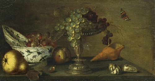 STILL LIFE WITH GRAPES, SHELLFISH AND PEAR