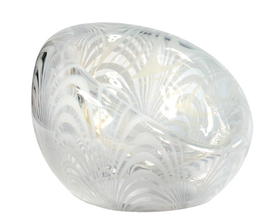 | Transparent glass oval cut with interlayer decoration of milky white foliage. | |