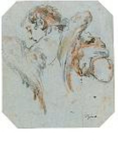 | Pen and brown ink and wash, and black and red chalk (recto | |