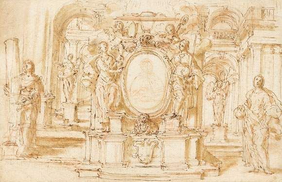 Médaillon dans un décor d'allégories