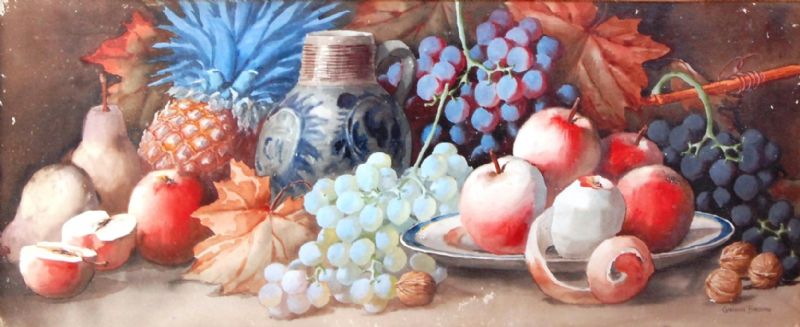 Still life with fruit and a stoneware jug