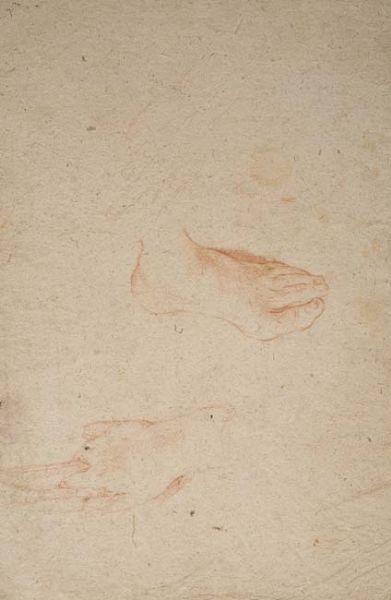 | Double-Sided Drawing with Studies of a Foot and Right Hand and Various Studies of Hands. | |