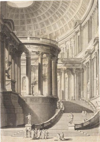An Antique Temple with a Coffered Dome.