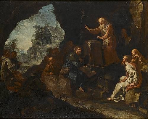 | A monk preaching to a pilgrim at the mouth of a cave; and The death of a domenican nun | |