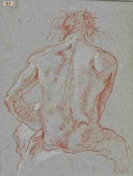 Homme nu assis, vu de dos