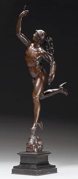 | A late 19th century bronze figure of Mercury cast by the Fredinand Barbedienne foundry | |