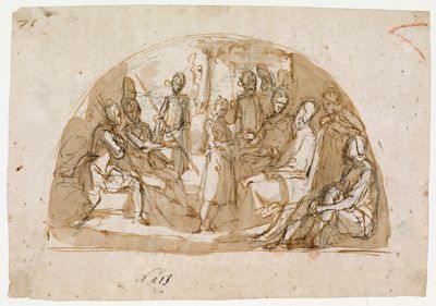 | Design for the decoration of a lunette: A young man and a seated old man | |