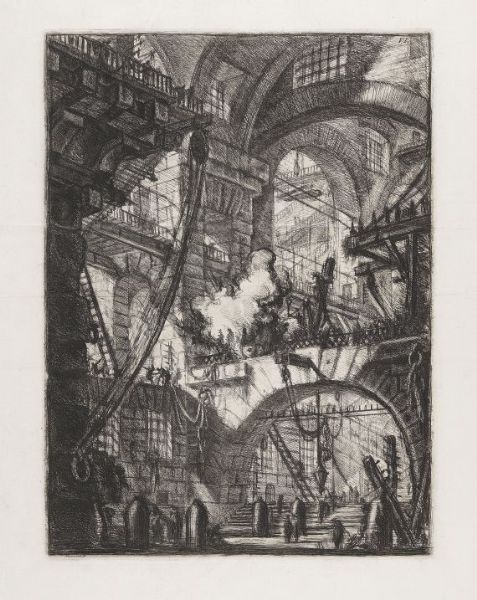 | Blatt VI der sechzehnteiligen Folge der "Carceri d'Invenzione" (The Smoking Fire) | |