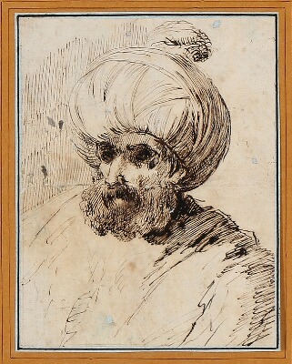 A man wearing a turban. Unsigned. Drawing ink on paper. Sheet size 178×138 mm. | |