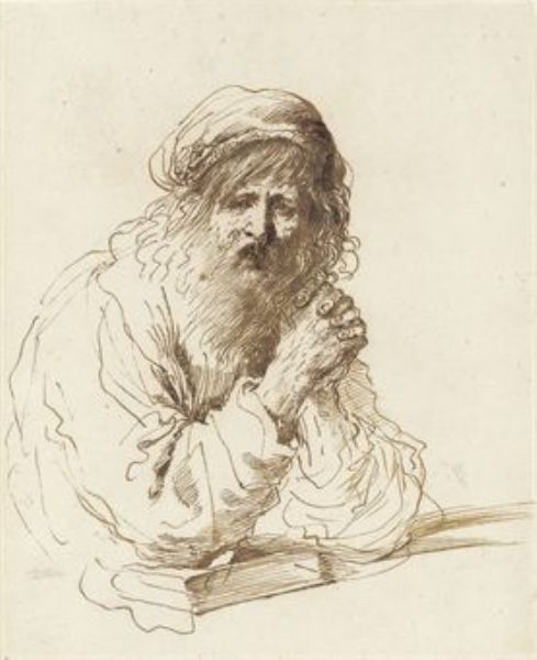 | Half-length study of a bearded man in a cap, seated with his elbow resting on a book | |