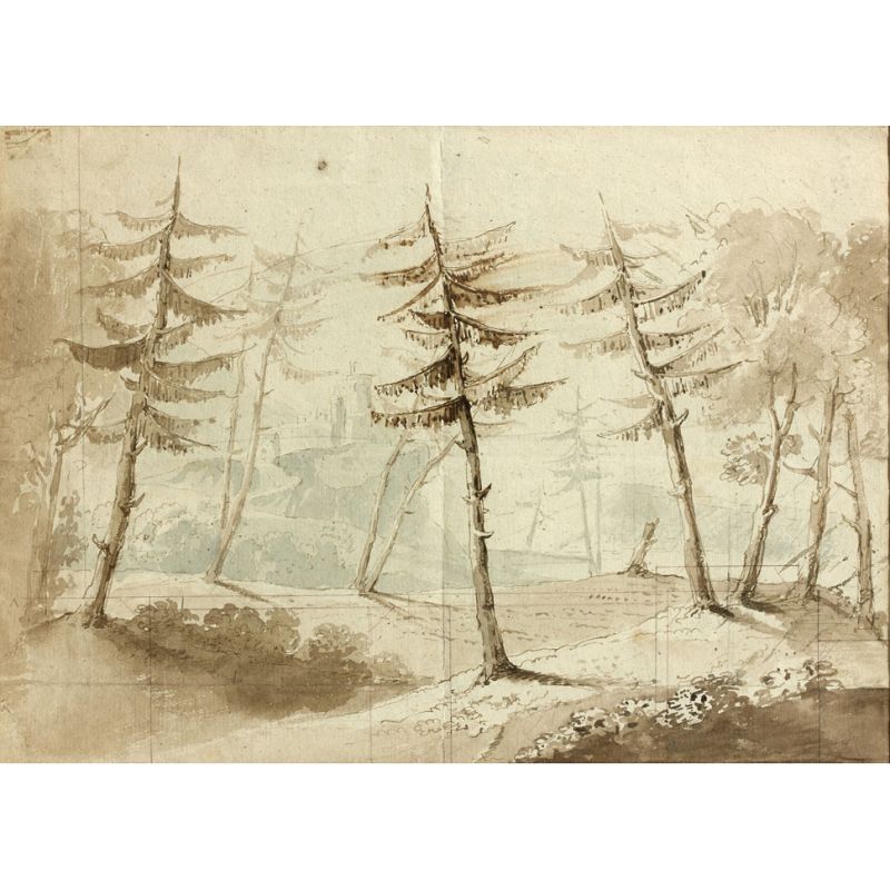 | Projet de décor : paysage sylvestre avec une forteresse | |