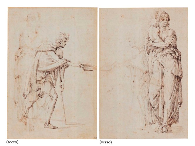 | A beggar holding a bowl (recto); A mother with her child (verso) | |